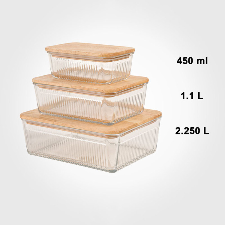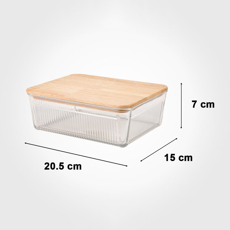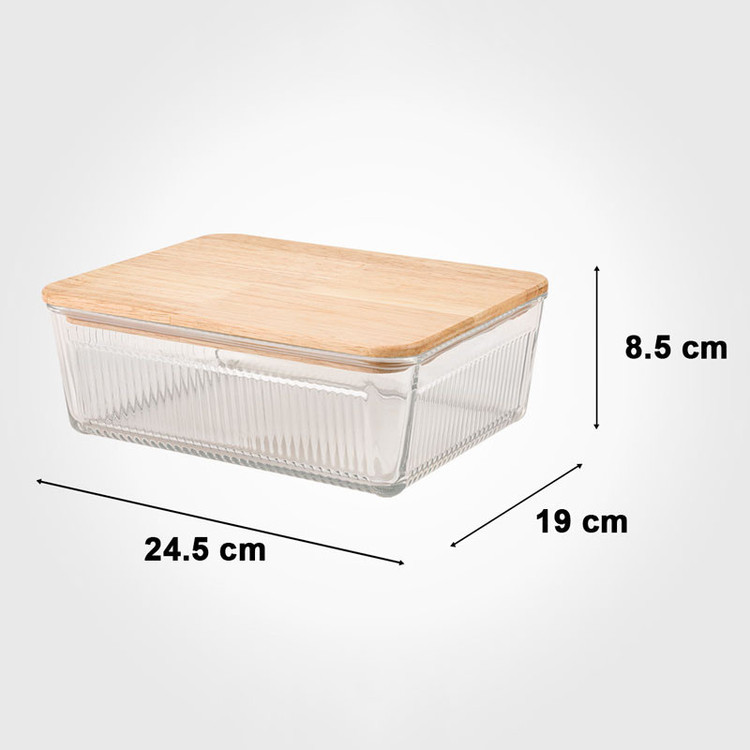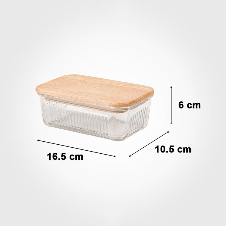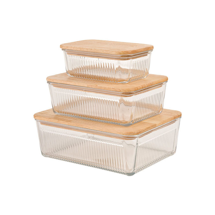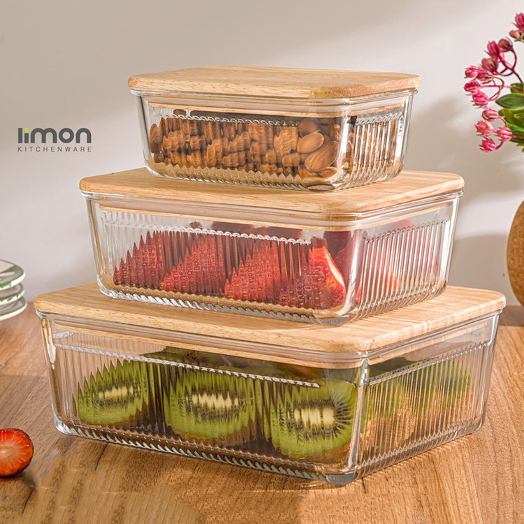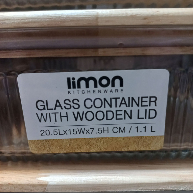 ست ظرف لیمون شیشه ای مستطیل شیاردار درب چوبی کد 221159